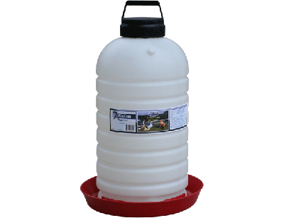 7 gallon capacity sturdy built plastic fountain. Water jar snaps easily into the plastic base, and a vacuum-sealed screw on cap controls the automatic water flow.