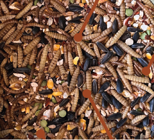 Ingredients: Wheat, Cracked Oats, Rolled Corn, Black Oil Sunflower Seeds, Black Soldier Fly Larvae, Dried Mealworms, Green Split Peas, Dried Chilli Pepper flakes.
